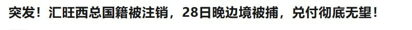 #最新消息:汇旺集团核心人物“西总”于2026年3月28日晚在边境口岸被执法人员当场控制,同时其柬埔寨国籍已被正式注销,这意味着其最后的“护身符”彻底失效,汇旺用户的兑付希望彻底破灭。
